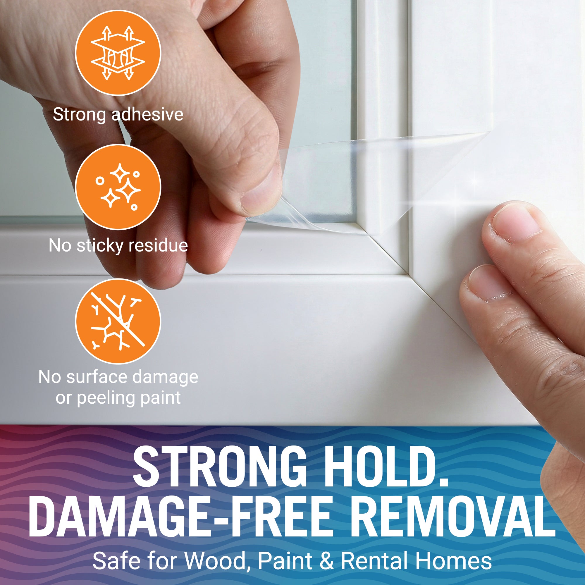 Safe for Renters and Landlords: No sticky residue. No surface damage. The tape sticks firmly to glass, wood, and painted trim, then peels off cleanly with gentle heat. Safe for deposit inspections. Safe for rental properties.