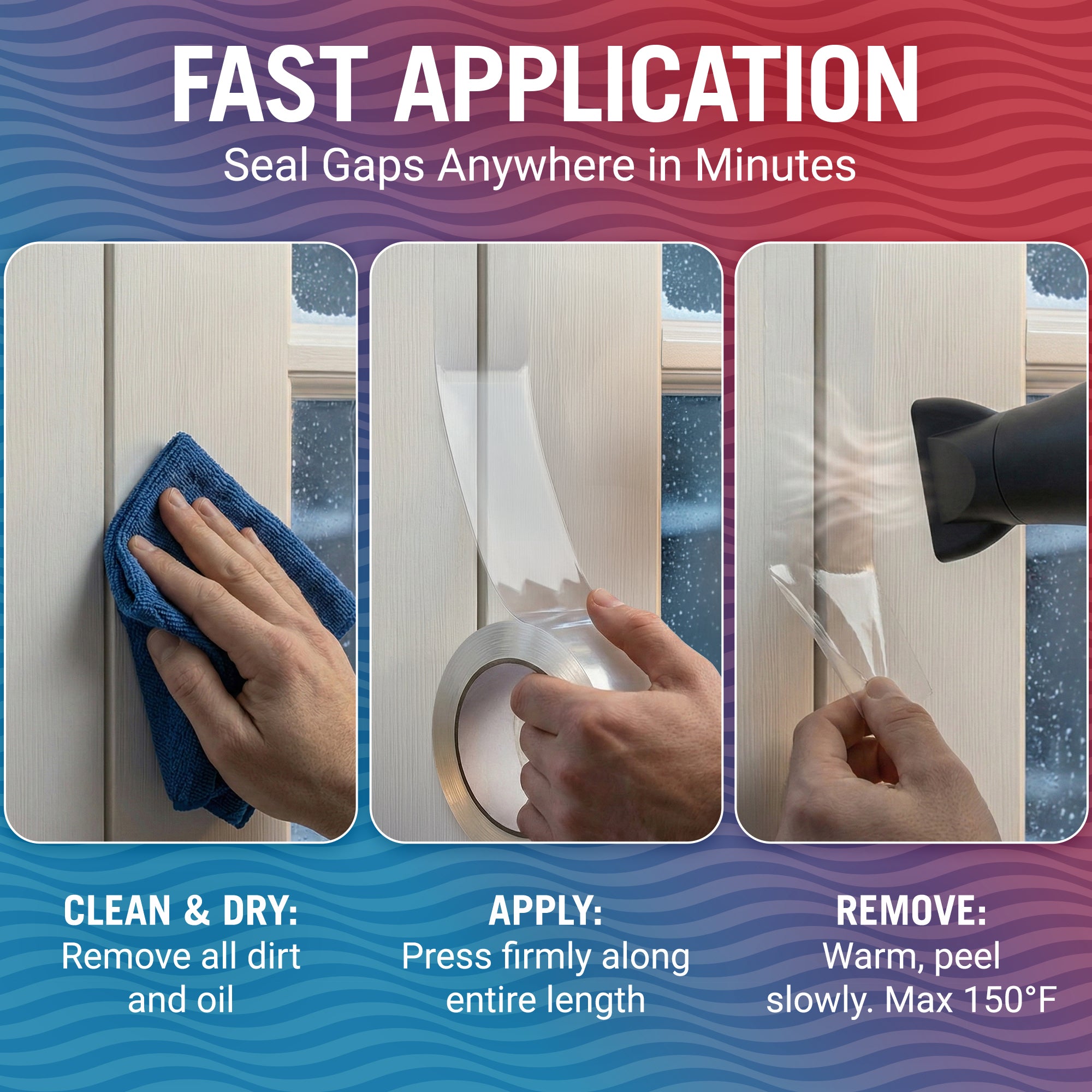 This tape seals it. No tools. No contractor. No permanent changes to the frame.